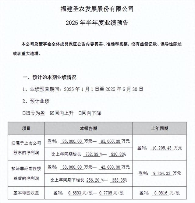 公司预计2025年上半年实现归母净利润为8.5亿至9.5亿元,同比增长732.89%至830.88%,上年同期为1.02亿元;预计扣非归母净利润为3.3亿元至4.2亿元,同比增长256%至353.35%,上年同期为9264.33万元。